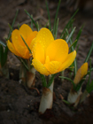 krokusy wiosenne odmiana Golden Yellow i fioletowe Tommasiniego, kaczeńce.