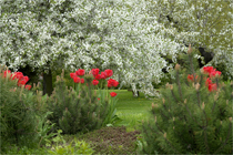 się zielone. Wielka szkoda, tak krótko cieszyły nas swym widokiem. Jedynie jabłonka dopiero co zakwitła i jak na