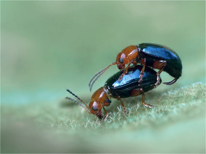wchodzi na jej odwłok. Do kopulacji przystępuje dopiero wtedy, gdy samica upoluje zdobycz i zajmie się jedzeniem. Samiec wtedy kopuluje, a potem szybko się