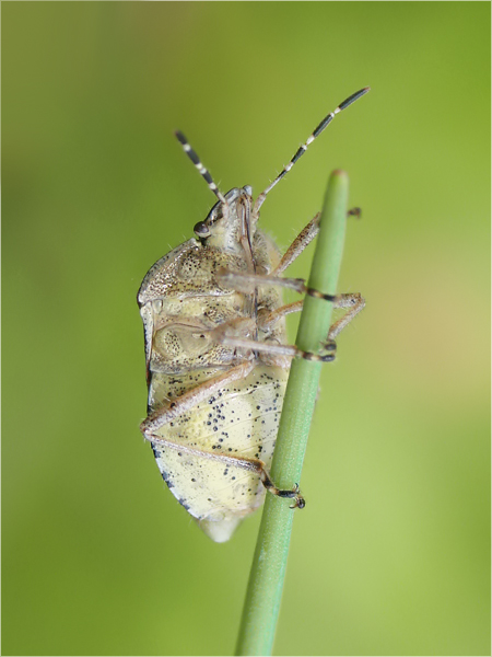 siedzącego na kwiatku szczypiorka, sympatycznej gąsieniczki wtulonej w liść tojeści rozesłanej.