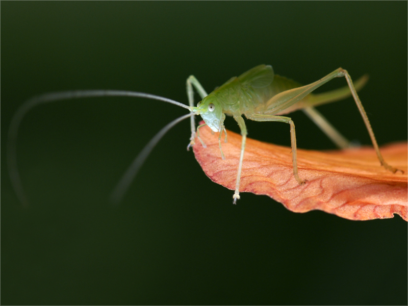 zwisającego na liściu rudbekii. Wisiał tak co najmniej