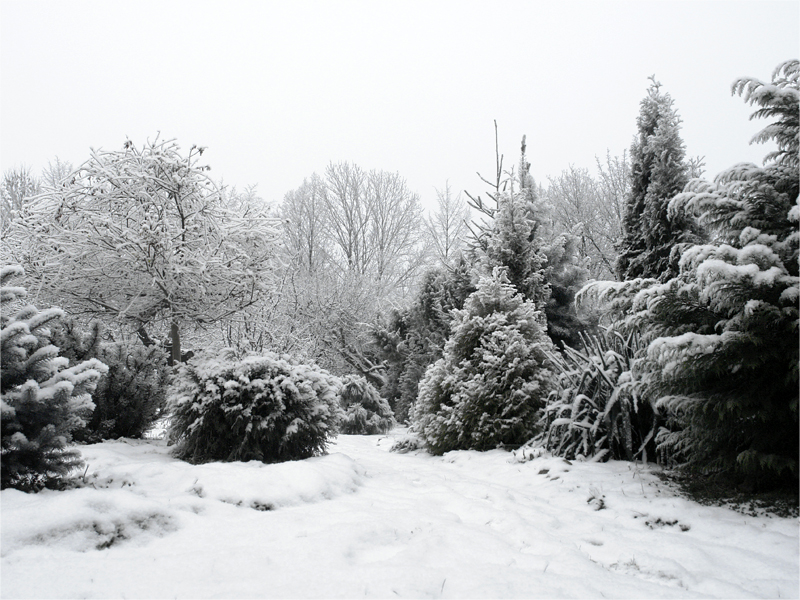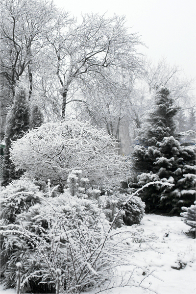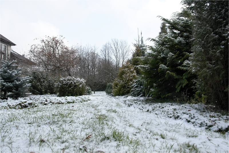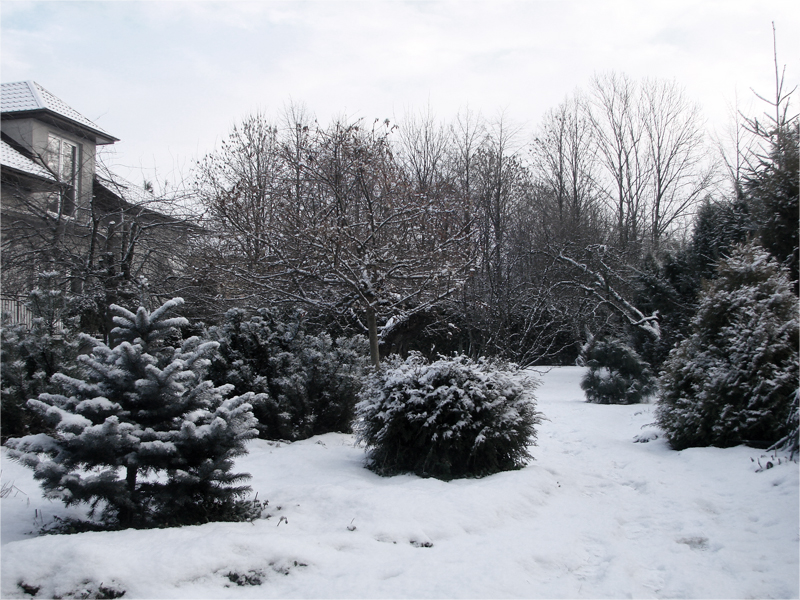 nocy trzyma jeszcze większy mróz. Ogródek pokrywa niezbyt gruba warstwa śniegu.