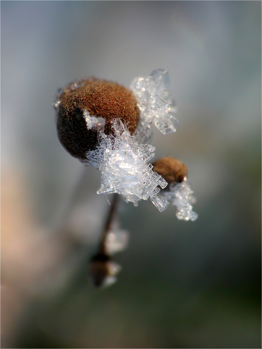 zlepionych kryształków lodu narastających czasami nawet do 2 cm