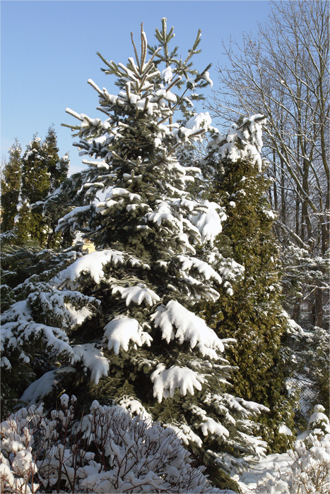 otulony grubą, śnieżną pierzynką. Żadne mrozy mu nie