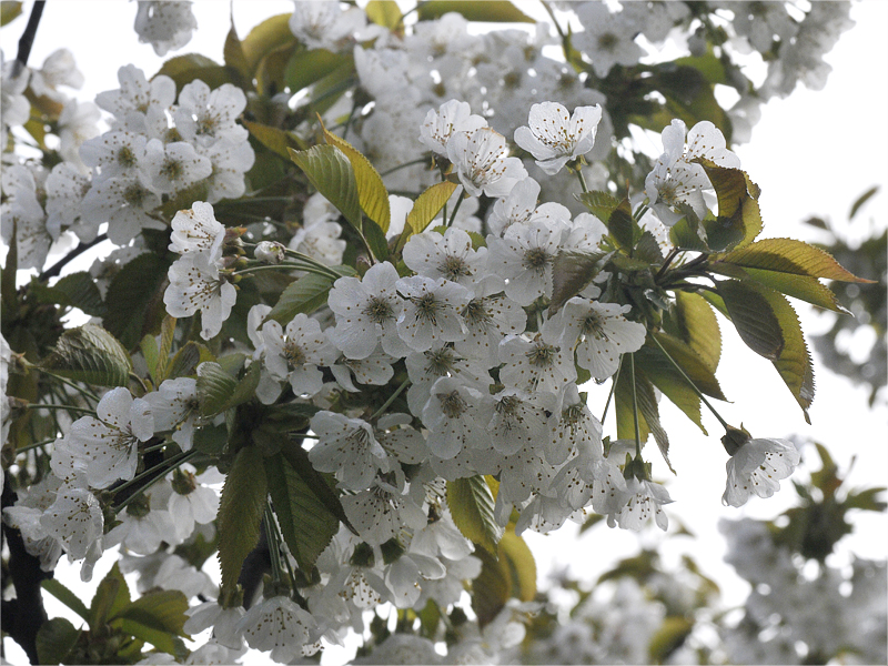 (odmiana Amers). Są również pojedyncze kwiaty na czereśni. |