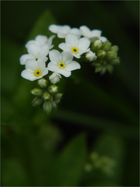 różowe i niebieskie niezapominajki, szafirki, żółte omiegi,