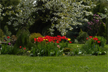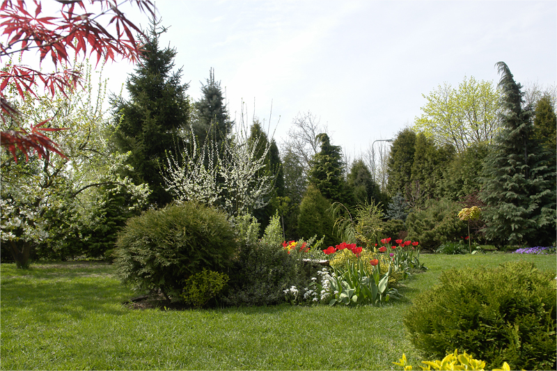 już wszystkie drzewa owocowe, a tulipanowa rabata mieni się