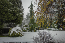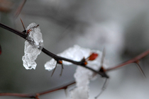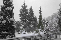 jedną złamaną grubą gałąź, inne mocno powyginane pod ciężarem