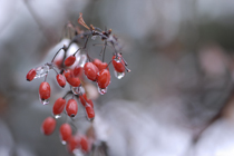 czerwonych owoców, a na śnieguliczce różowe kuleczki.