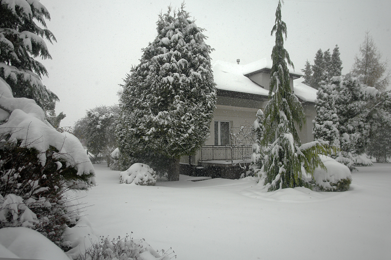 stało się, od samego rana niemiłosiernie sypie śnieg, do tego