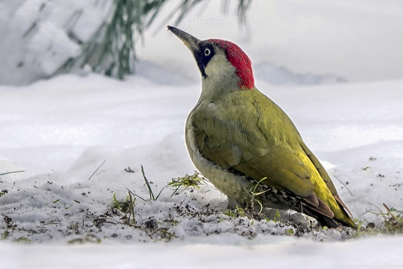 obserwacja dzięcioła, poparta zdjęciami, potwierdziła fakt, że w zimie dzięcioły
