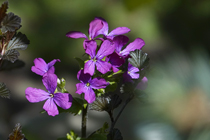 obsypane bladoróżowymi kwiatami. Niebieskie, białe i różowe