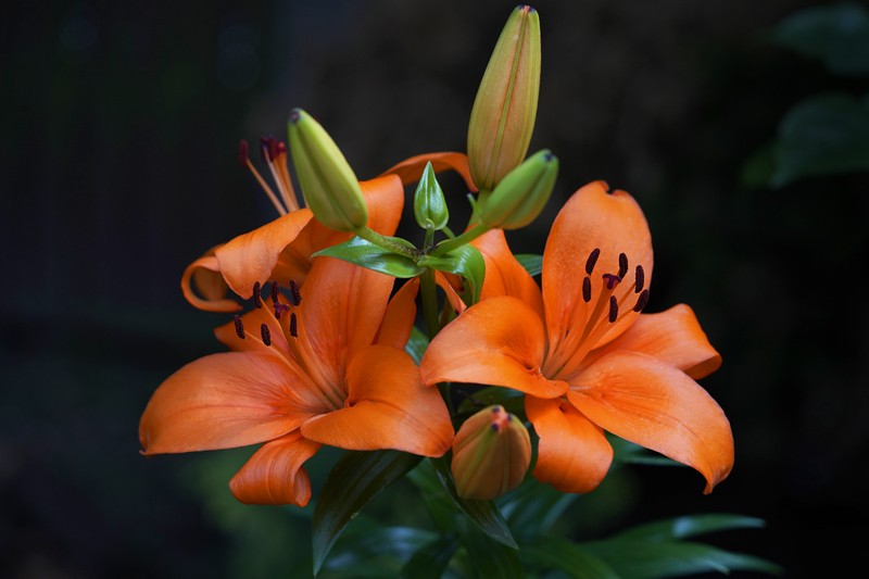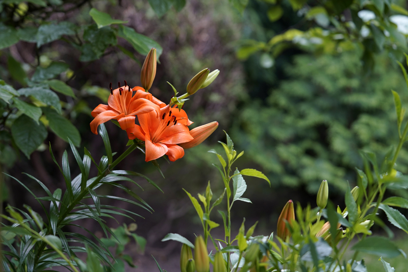 pierzastych, pomarańczowych lilii azjatyckich, pomarańczowych