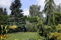 białe i niebieskie rozwary wielkokwiatowe, funkie, rudbekie, lwie