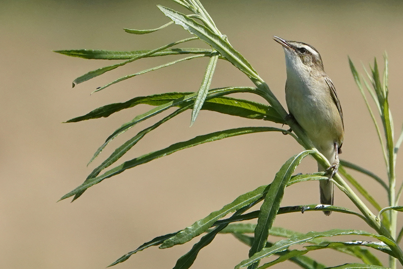 trzciniaków. Obie płcie ubarwione są jednakowo. Brązowa głowa z białawymi brwiami i ciemnymi pręgami nad